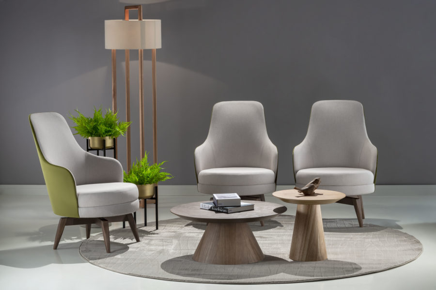 1. Tecido único: o encosto e o assento recebem o revestimento do mesmo tecido, sendo assim esta composição transmite elegância e proporciona uniformidade a peça.