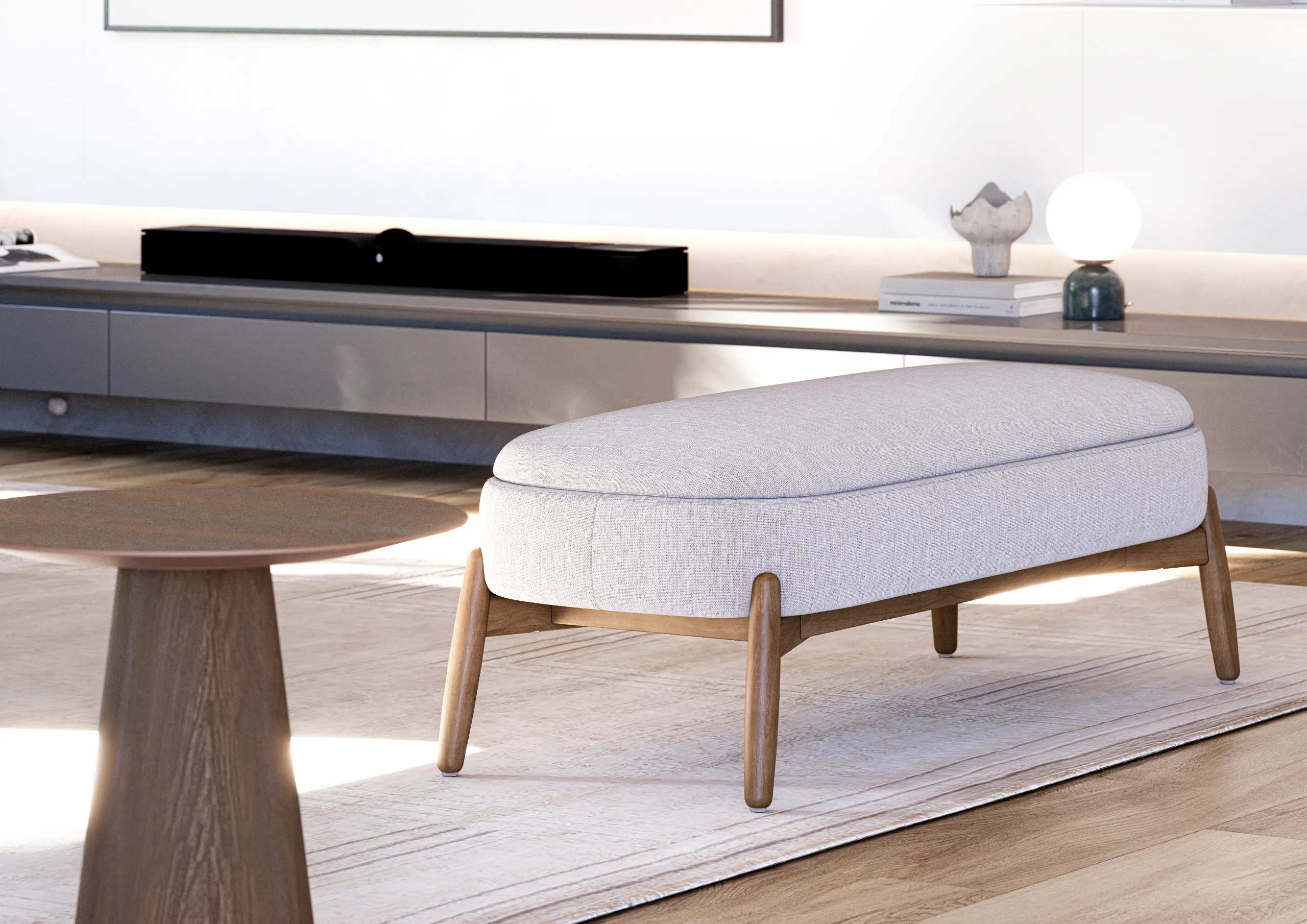 Estrutura em madeira maciça de eucalipto. Assento em MDF ergonômico, estofado com espuma de boa densidade e revestido com tecido de alta qualidade. Produto fornecido montado.