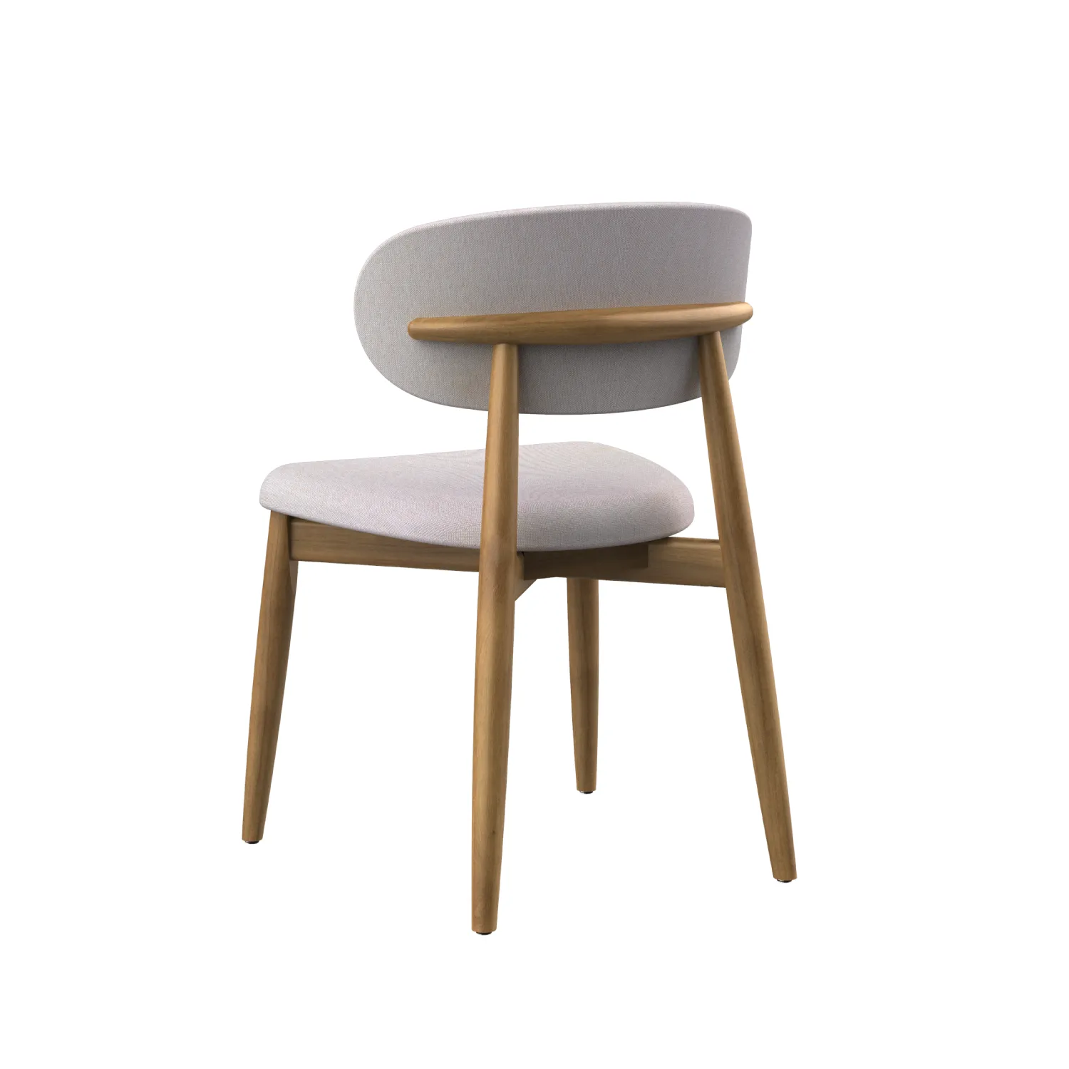 Estrutura em madeira maciça de eucalipto e encosto em MDF ergonômico estofado com espuma de boa densidade e revestida com tecido.