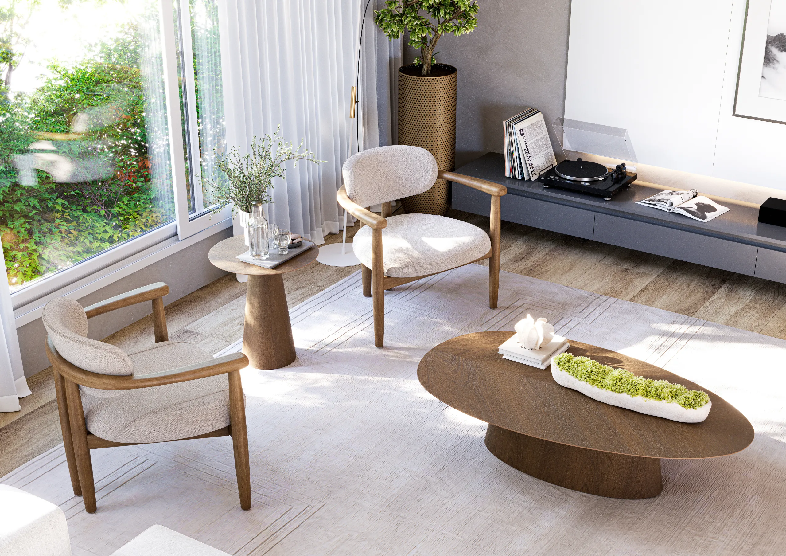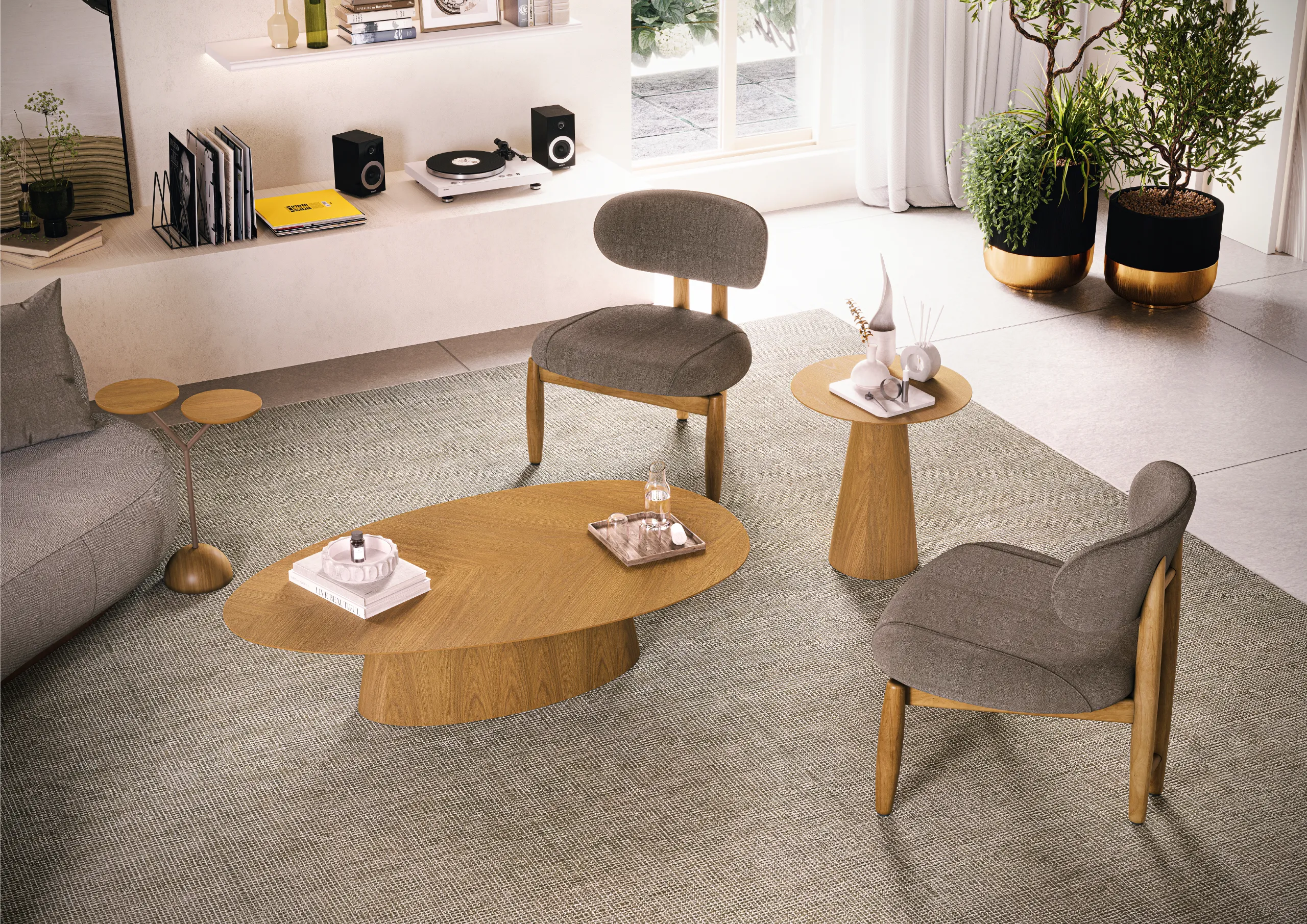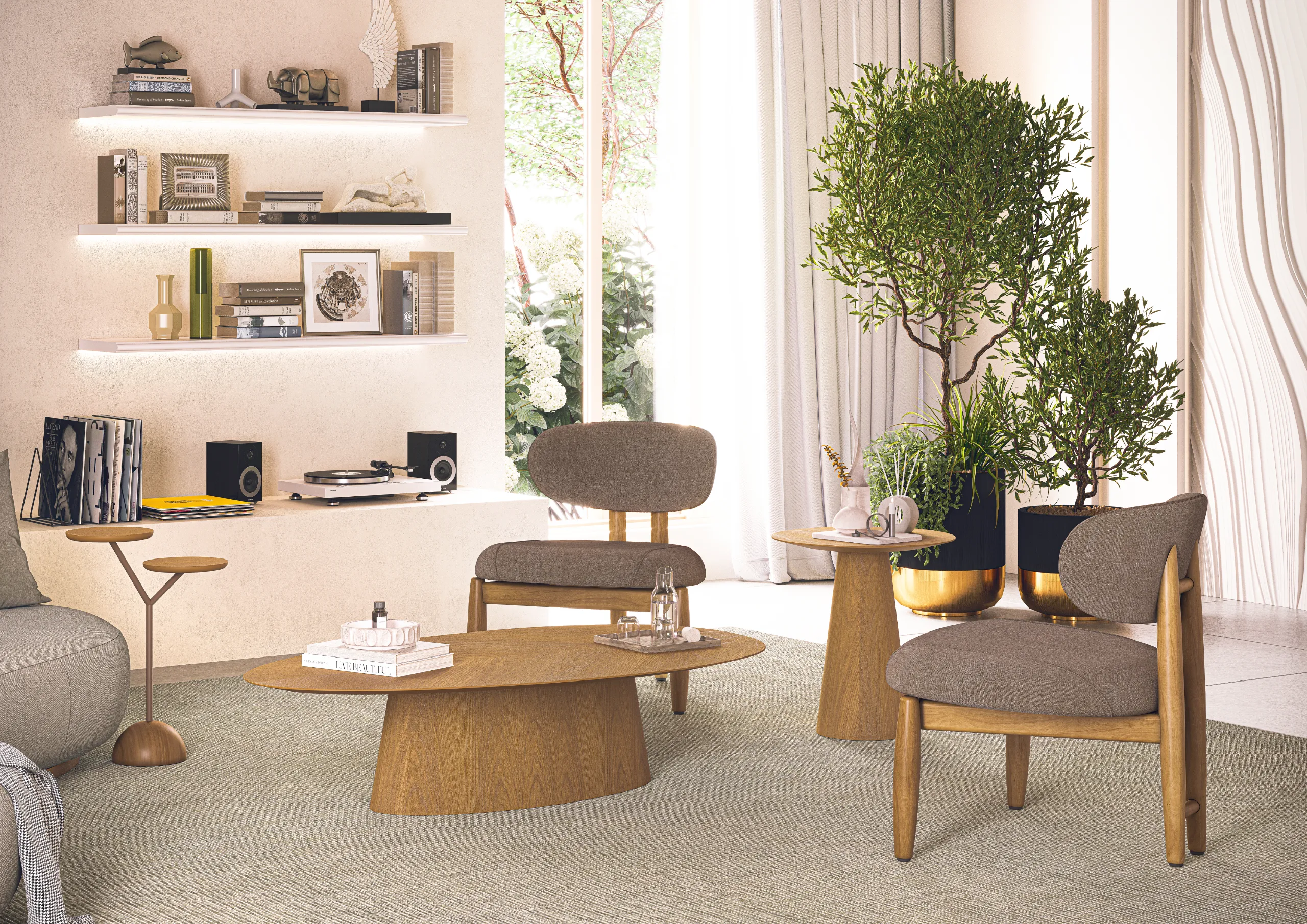 Inspirada nos contornos suaves e curvas delicadas da folha da Fitônia, Mesa Folha é uma peça de mobiliário que traz para o ambiente residencial a natureza em sua forma mais refinada.