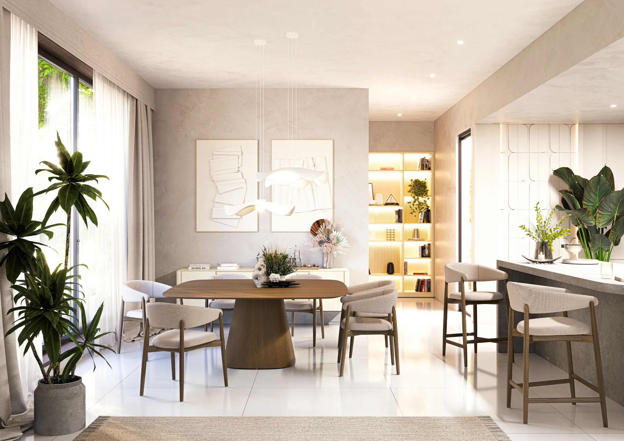 A Mesa Ellen traz a proximidade equilibrada entre todos os lugares, interação natural e aproveitamento uniforme do espaço de uma mesa quadrada.