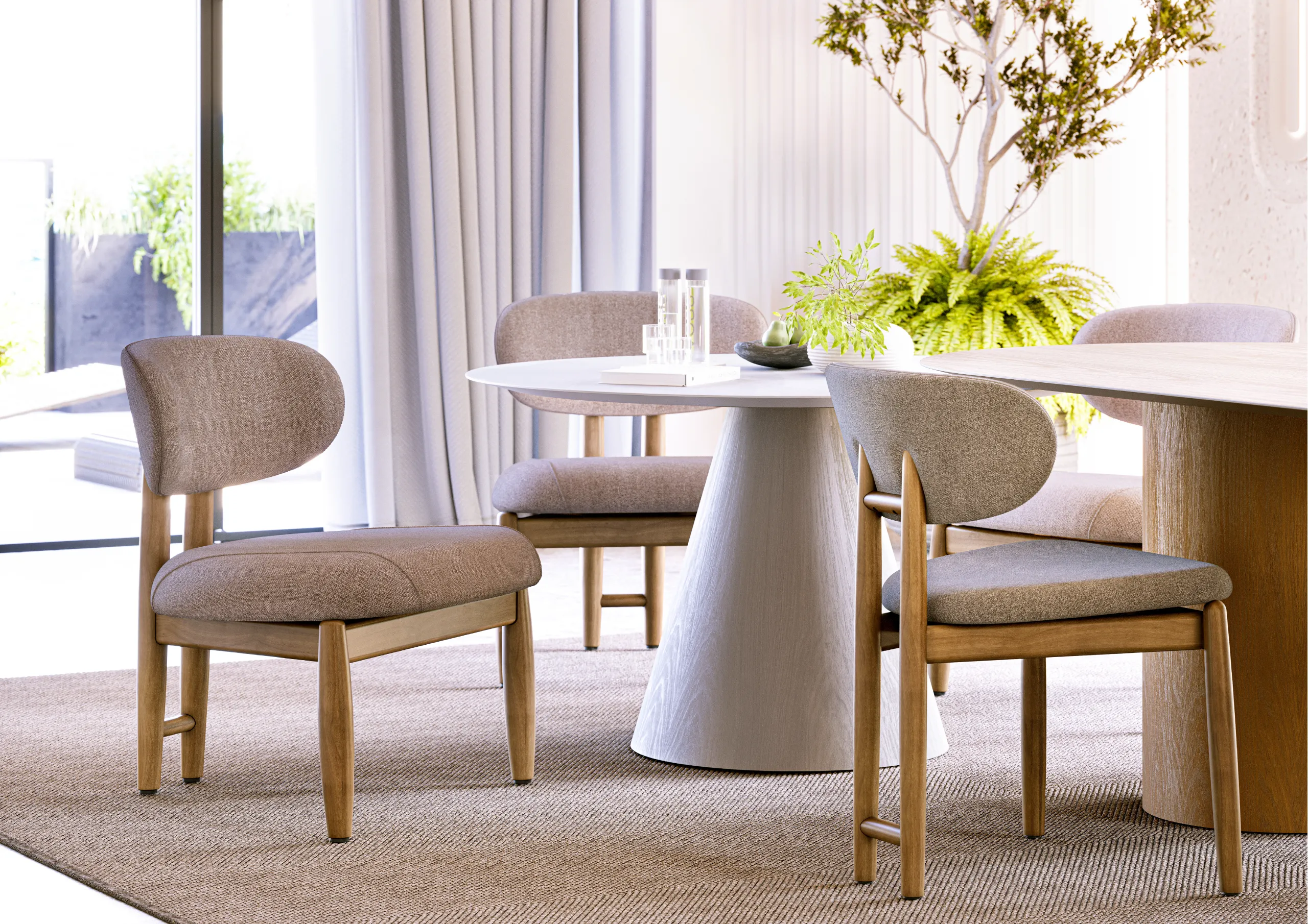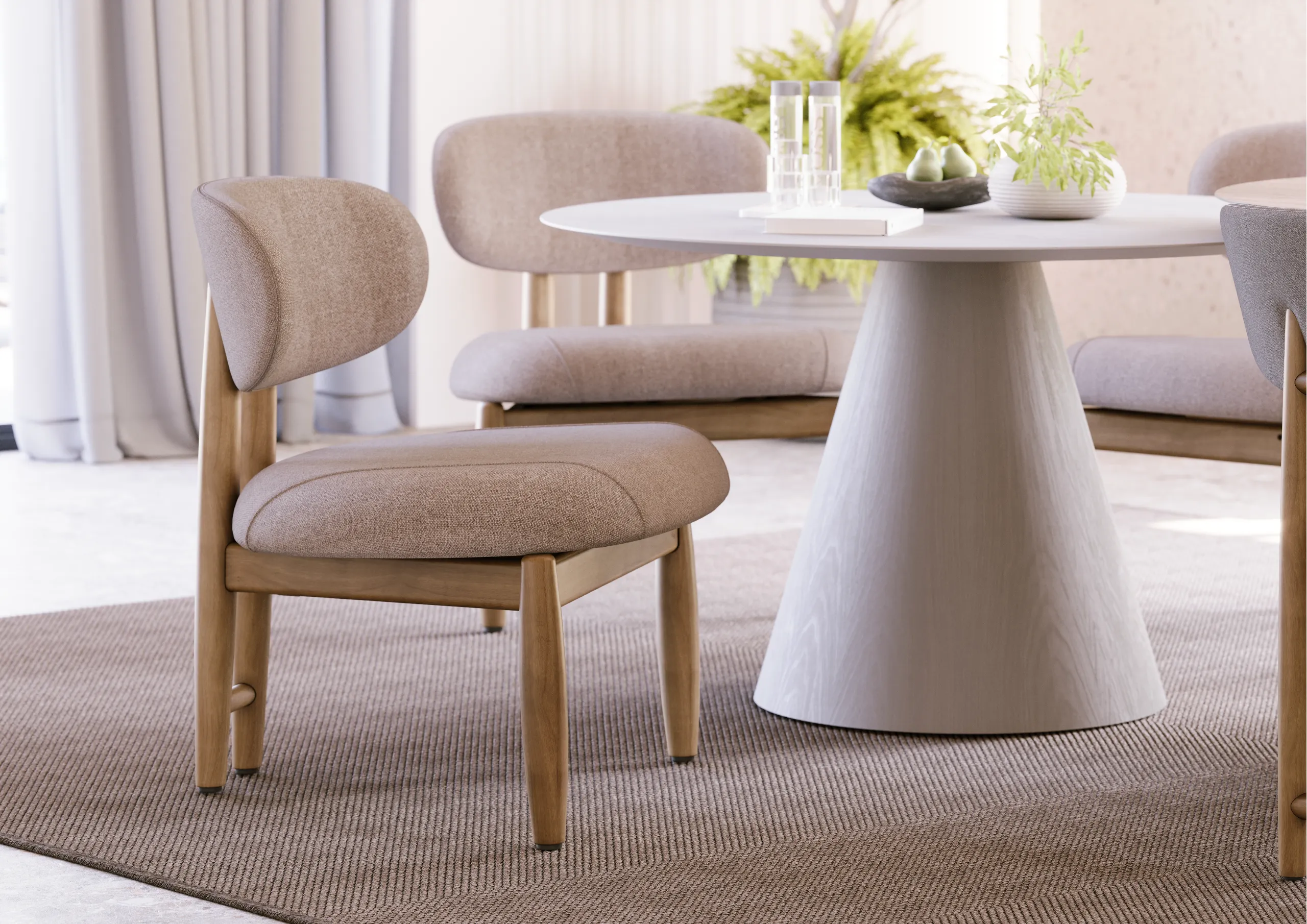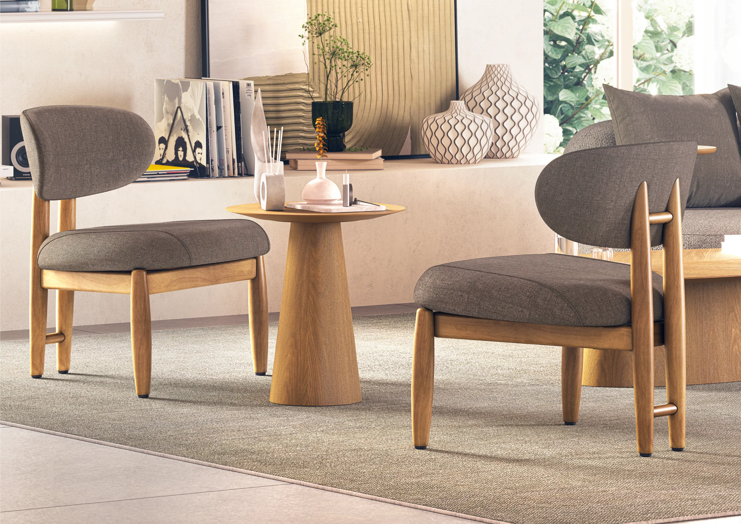Com um design contemporâneo, Helena se destaca pela estrutura posterior afunilada, um detalhe que foge do convencional e confere à cadeira uma silhueta marcante e cheia de personalidade.