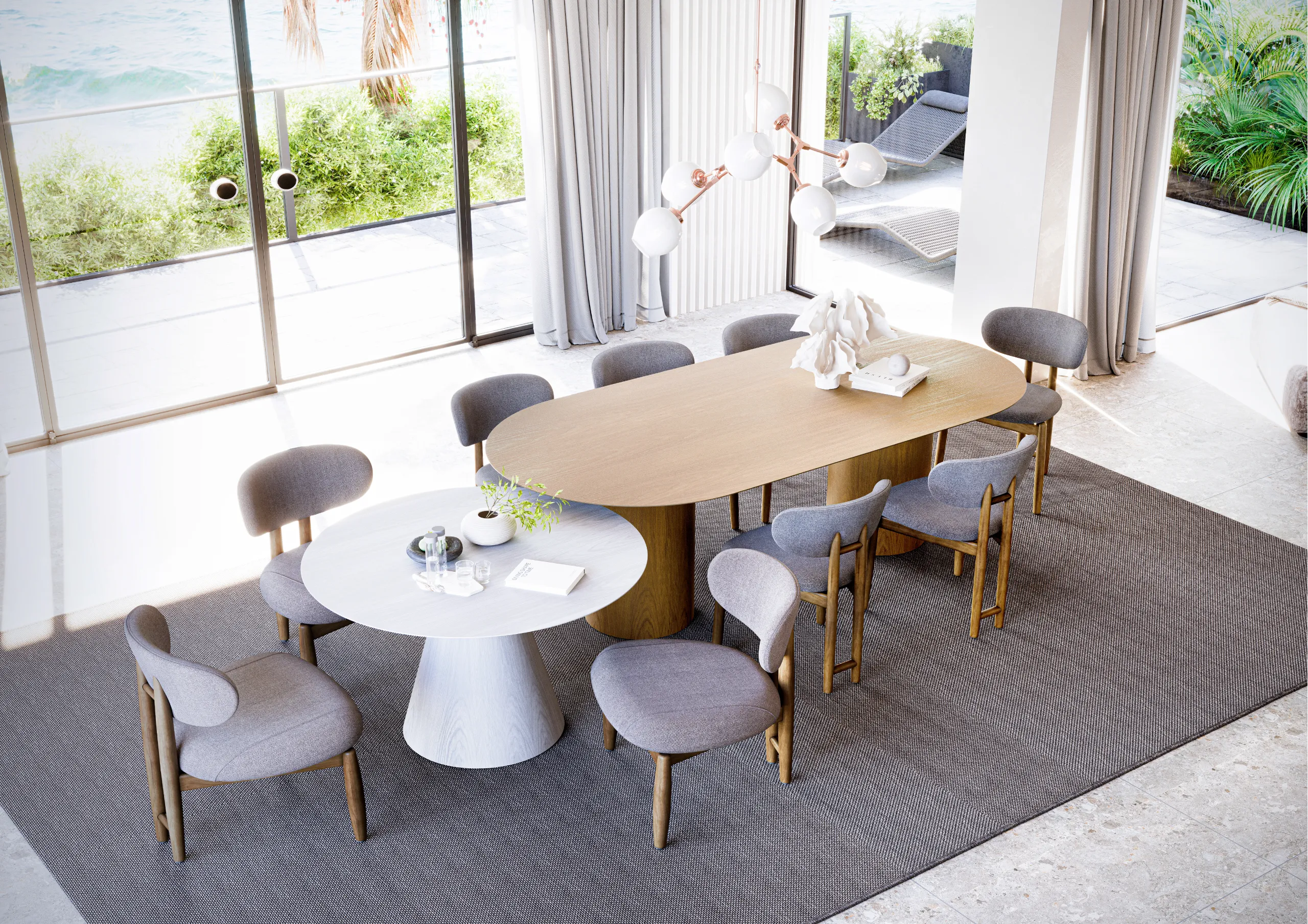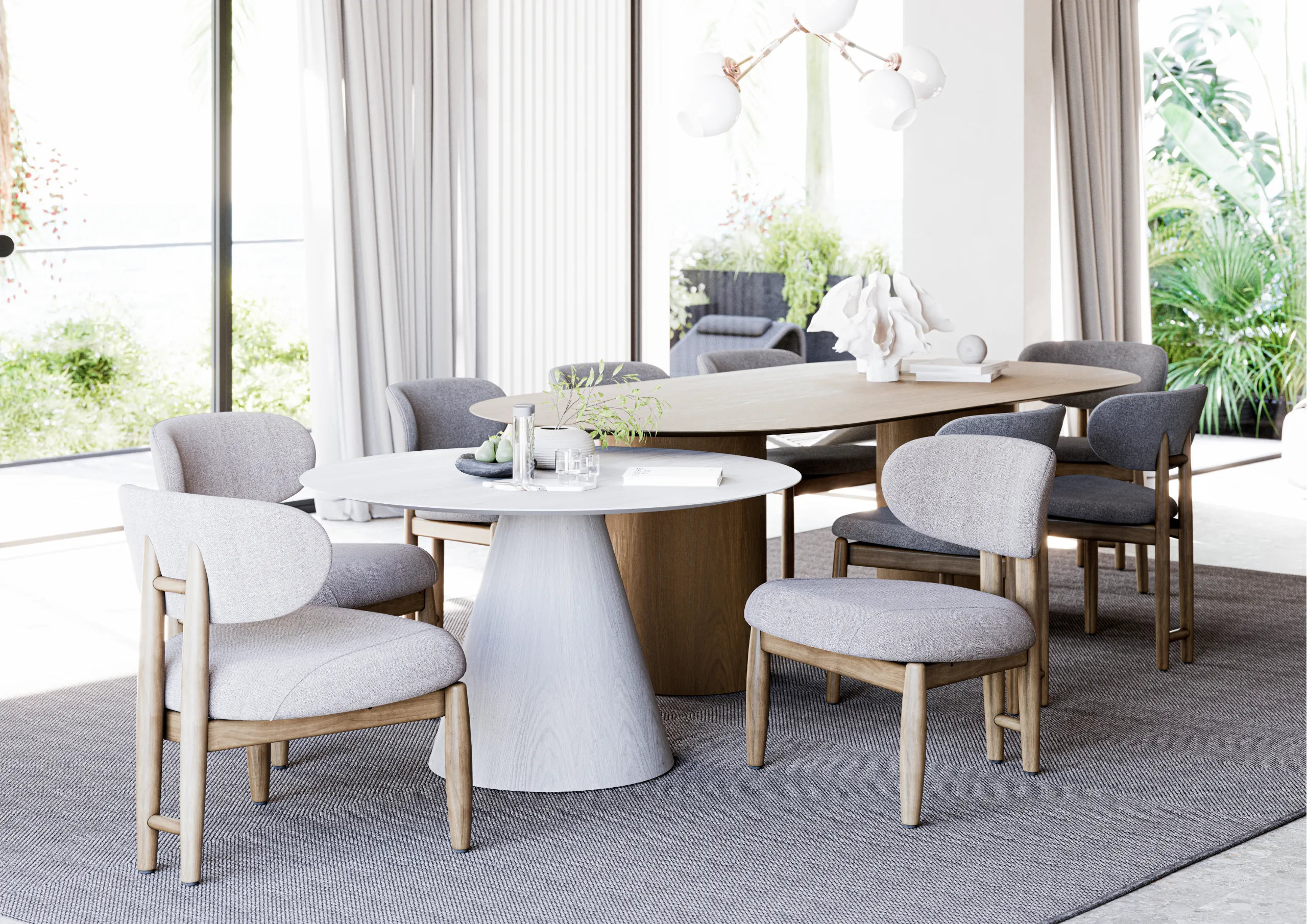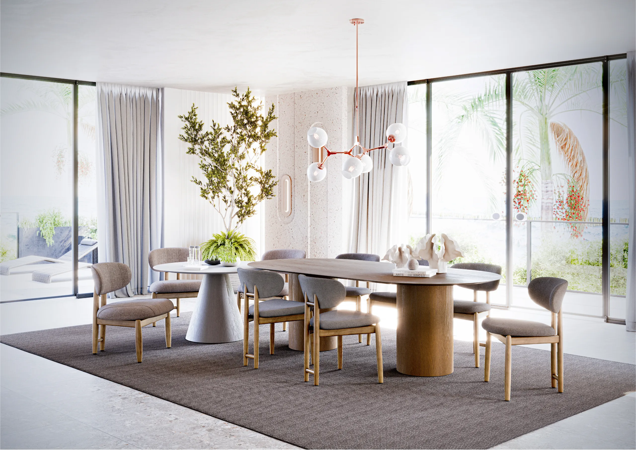 Com um design contemporâneo, Helena se destaca pela estrutura posterior afunilada, um detalhe que foge do convencional e confere à cadeira uma silhueta marcante e cheia de personalidade.